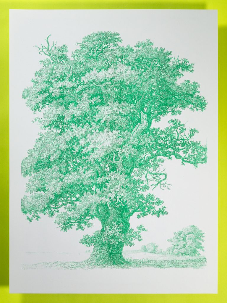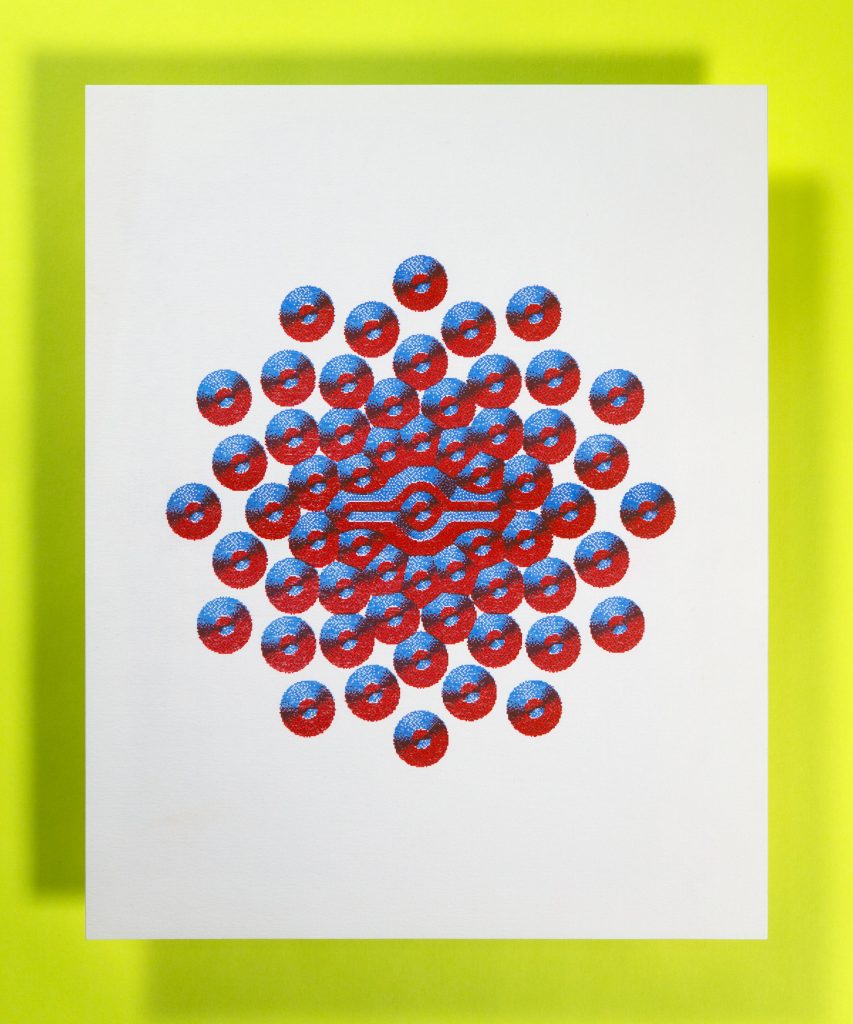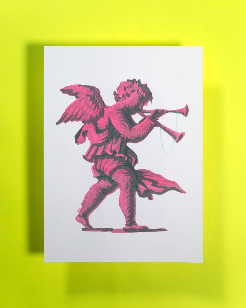 We have carefully chosen our initial color set to maximize the amount of CMYK-adjacent color combos available. We like to print with 3 colors because it’s fun to blend these Riso inks, but if you want the most contrast or need legible text, we recommend adding black as well. Message us and we’ll help you get set up with exactly what you need for your print job.